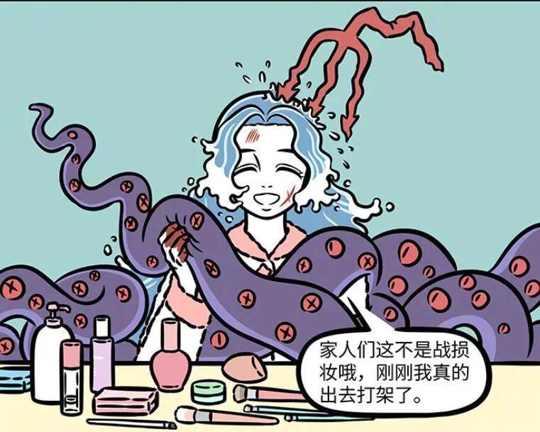 没过多久,妈祖娘娘又跑出去工作,回来之后顶着一脸的伤疤,手上还插着一根三叉戟。